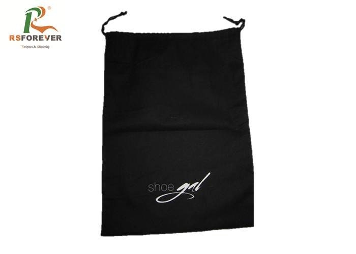 Custom Printed Black Cotton Canvas Drawstring Bag Pull String Type For Shoes